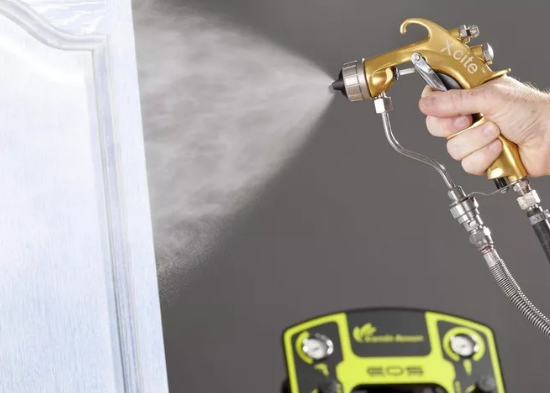 但用噴涂法進行施工也必須掌握一些操作技巧:用潔凈的水將涂料調至合適噴涂的粘度,以涂-4粘度計測量,合適的粘度一般是20-30秒。如一時沒有粘度計,可用目測法:用棒(鐵棒或木棒)將涂料攪勻后挑起至20厘米高處停下觀察,如漆液在短時間(數秒鐘)內不斷線,則為太稠;如一離桶上沿即斷線則為太稀;要在20厘米高處剛停時,漆液成一直線,瞬間即斷流變成往下滴,這個粘度較為合適。